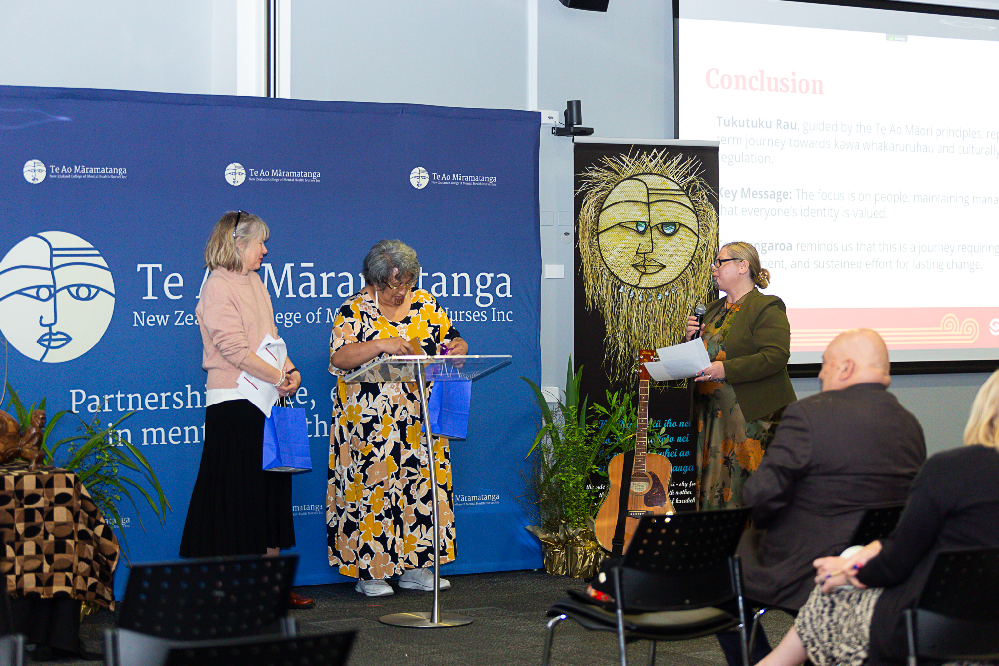 The conference commenced with a pōwhiri and the arrival of Taranga. The attendees were then welcomed by Dr Jenny Parr and Rachel Muir followed by our opening speakers Hineroa Hakiaha (President) and May Pritchard (Kaiwhakahaere).